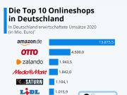 Die tausend umsatzstärksten Onlineshops Deutschlands haben im vergangenen Jahr erwartbar von der Pandemie profitiert. Ihr Umsatz erhöhte sich gegenüber 2019 um gut ein Drittel auf 68,8 Milliarden Euro. Besonders große Zuwächse verzeichneten dabei Unternehmen, die üblicherweise stärker auf Filialen setzen.